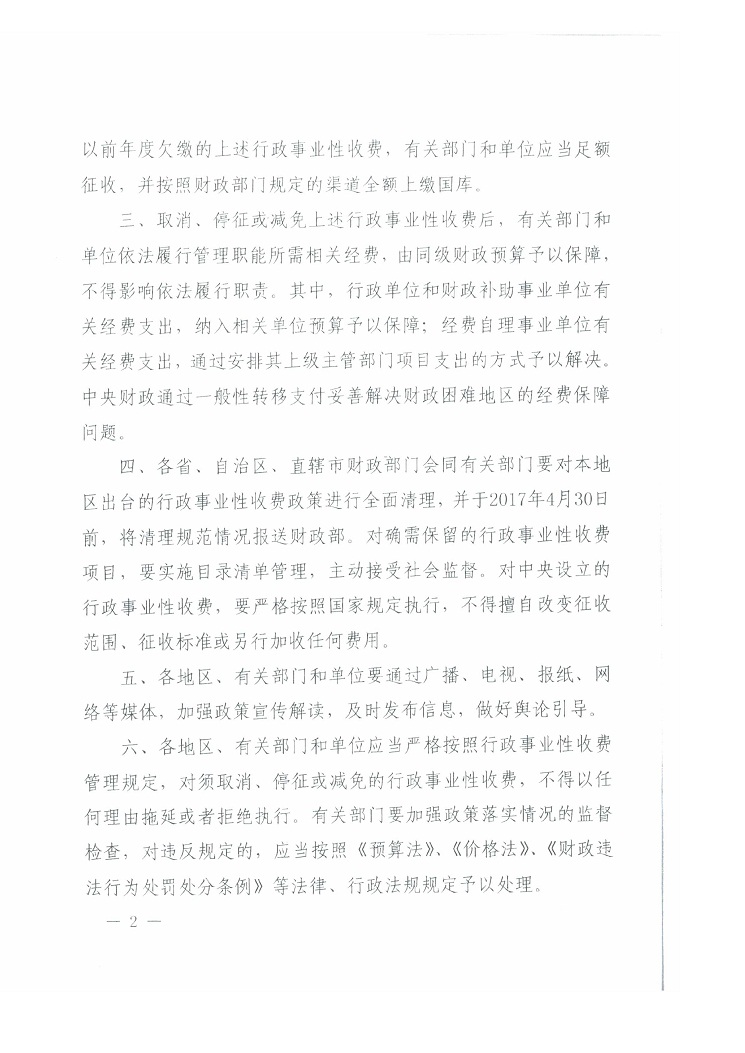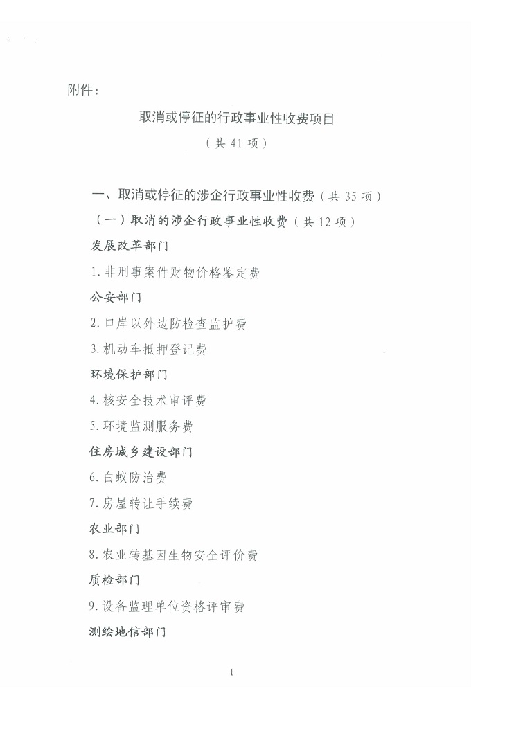 關(guān)于清理規(guī)范一批行政事業(yè)性收費有關(guān)政策的通知