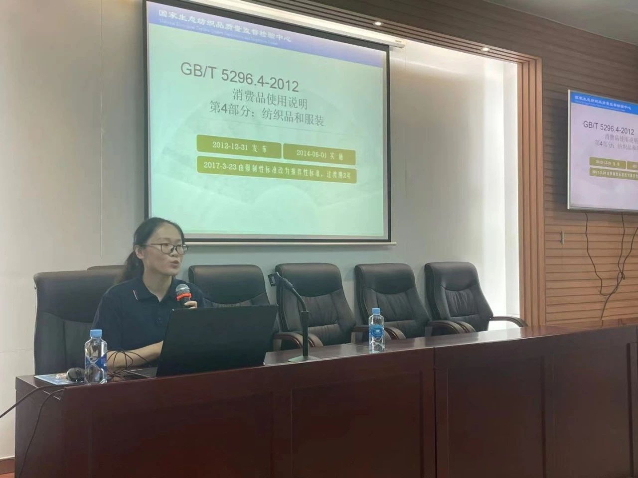 培訓會上,技術專家吳麗敏和宋鵬飛兩位工程師分別對GB/ T 5296.4—2012《消費品使用說明 第4部分:紡織品和服裝》和GB 18401-2010 《國家紡織產(chǎn)品基本安全技術規(guī)范》進行全面系統(tǒng)地解析,并結合日常檢驗檢測工作中的案例進行了深入講解。