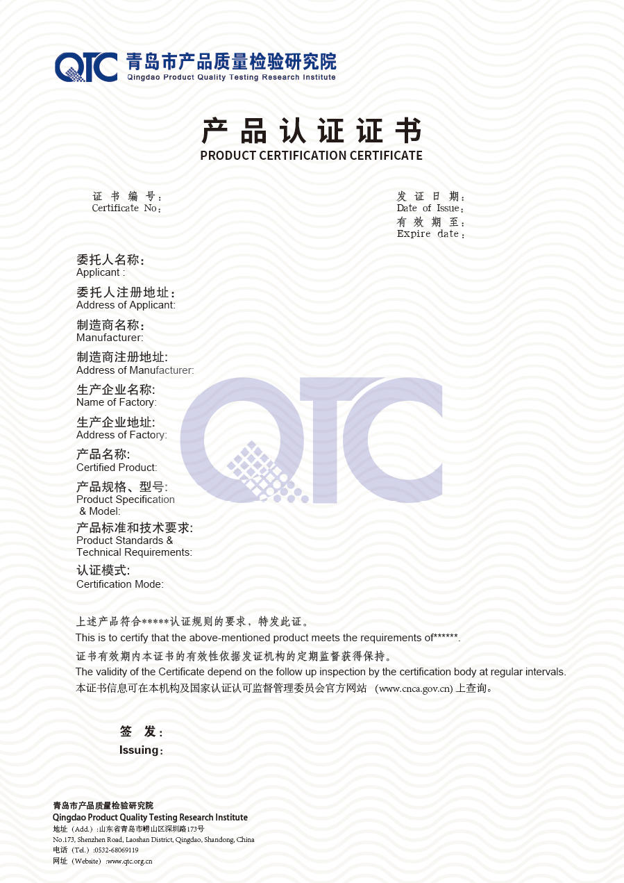 產(chǎn)品認(rèn)證證書樣式